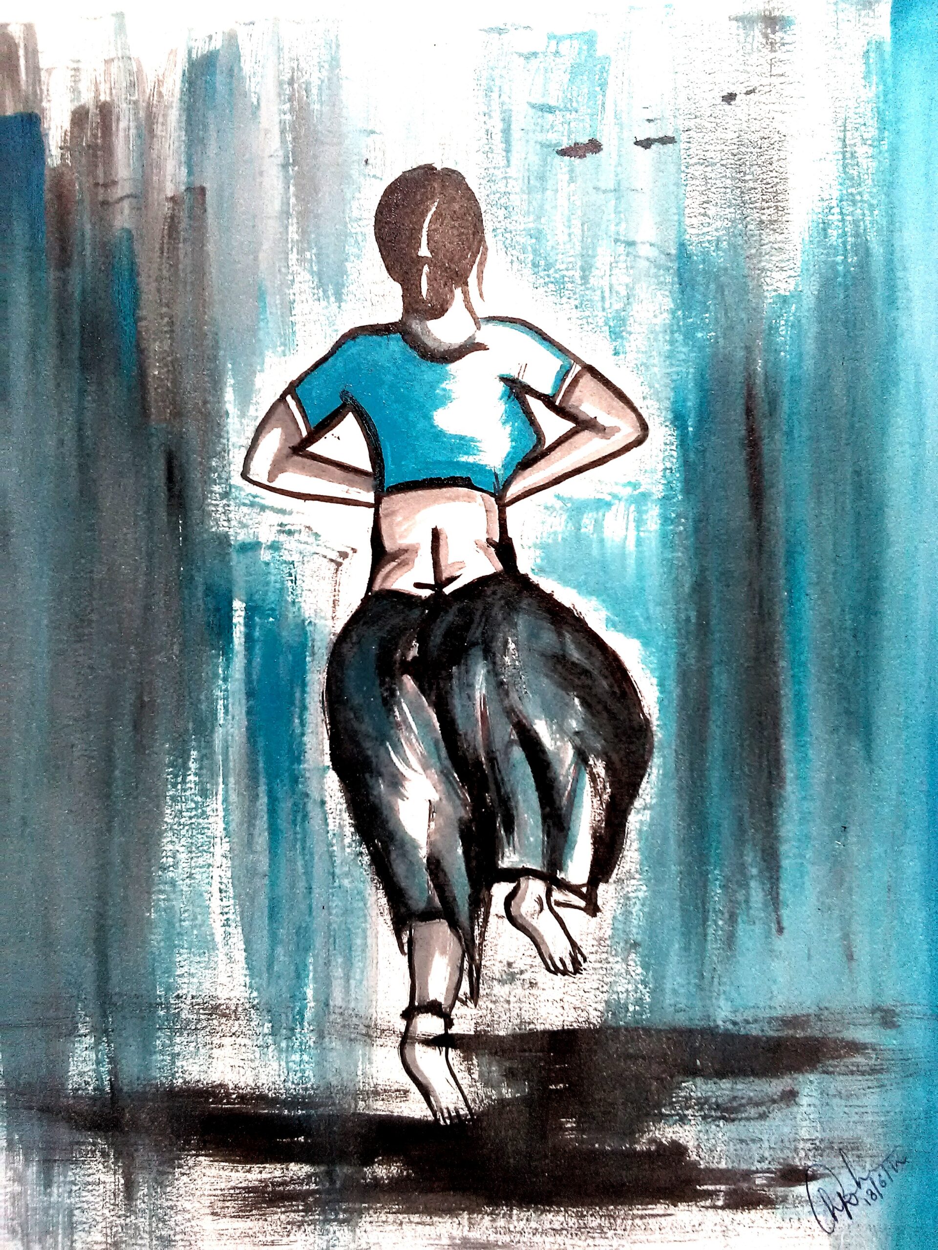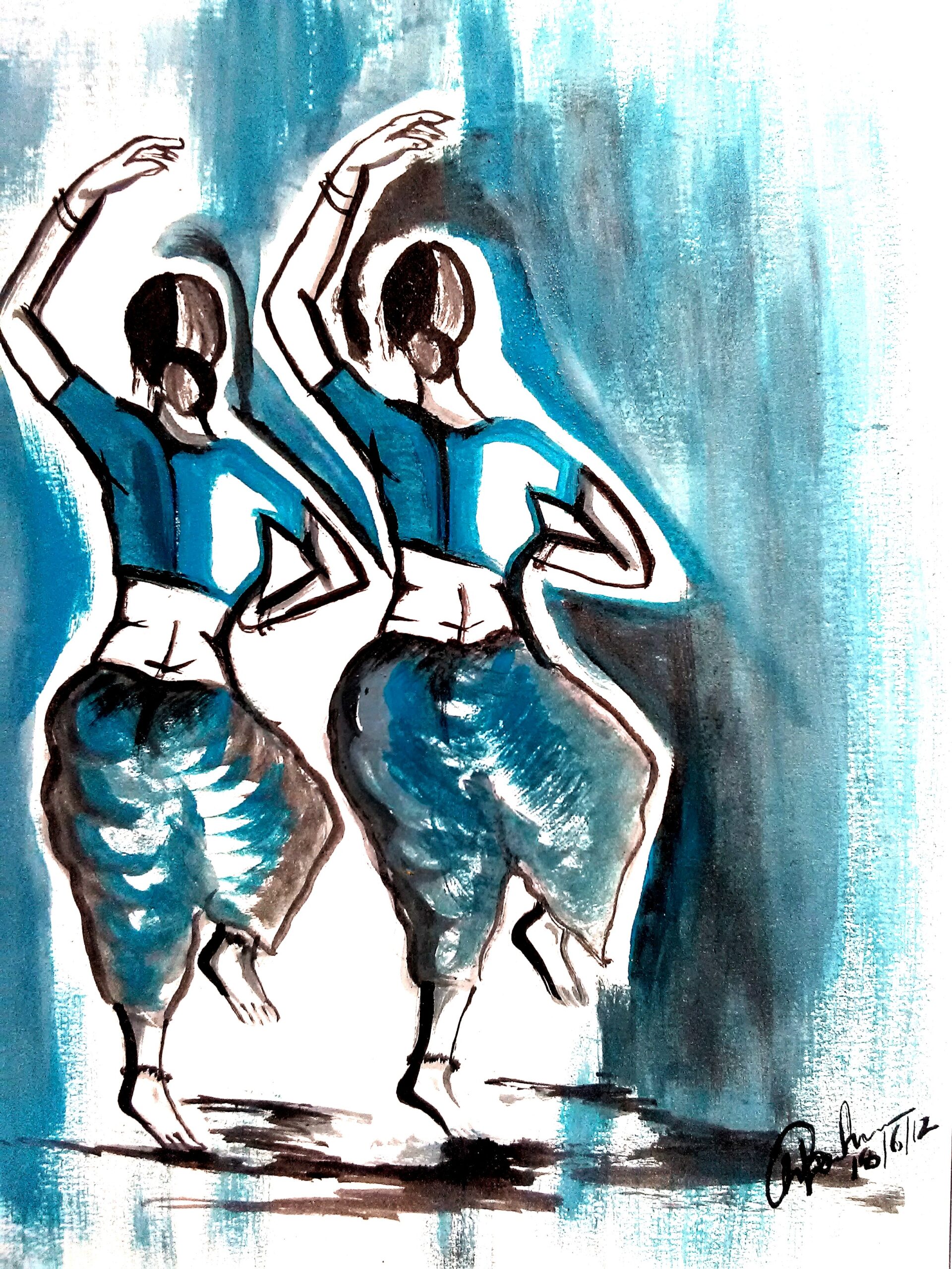 Dancing Women oil painting 8 x 11 inches set of two paintings with glass frame