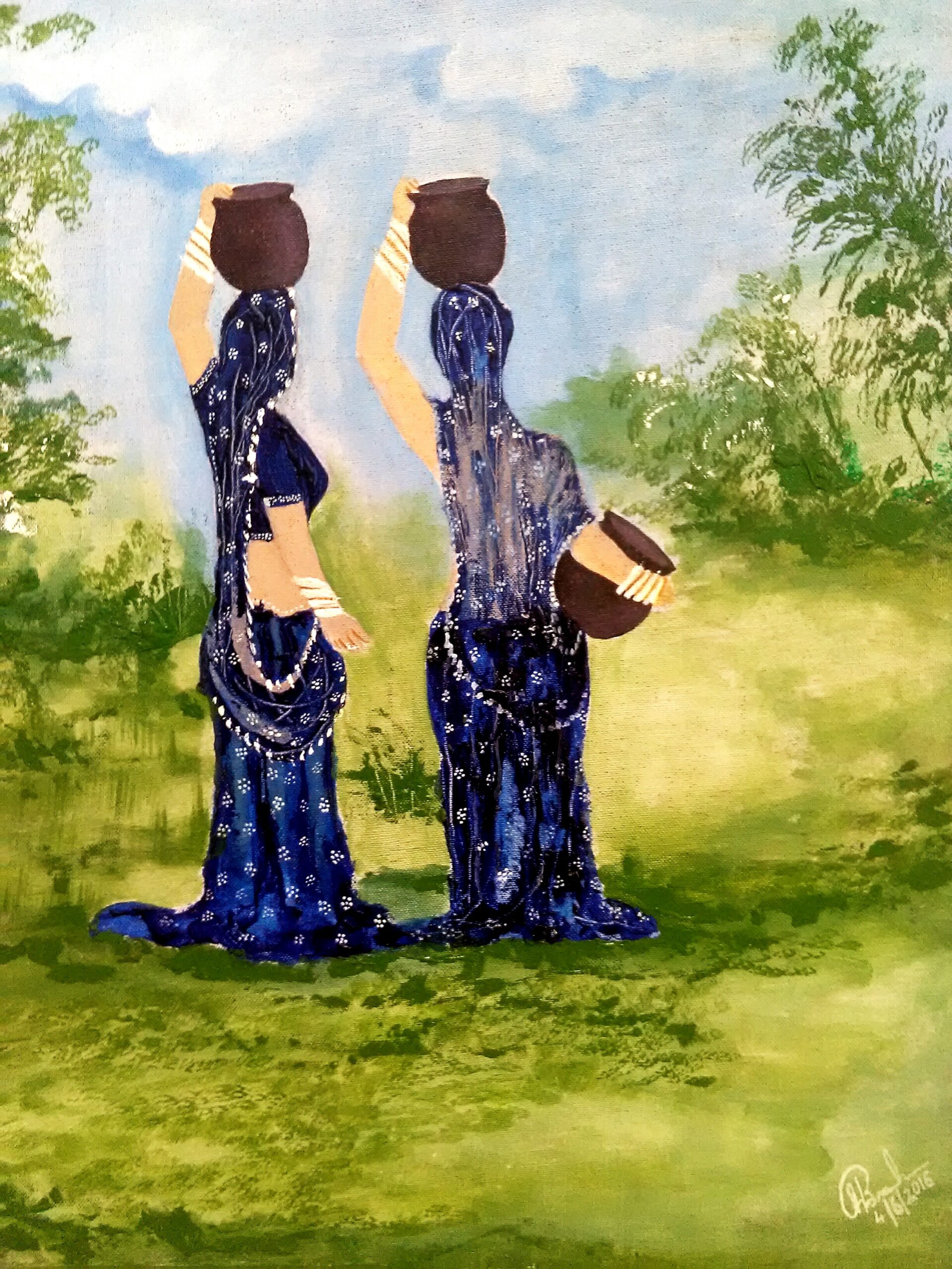 Rajasthani Women’s acrylic painting on canvas size 24 x 12 inches