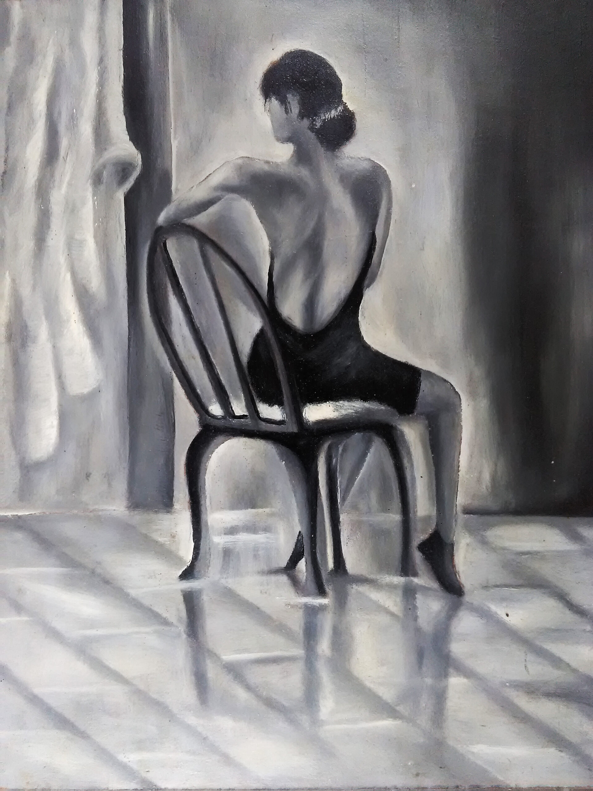 Women sitting in chair acrylic painting on canvas size 24 x 12 inches